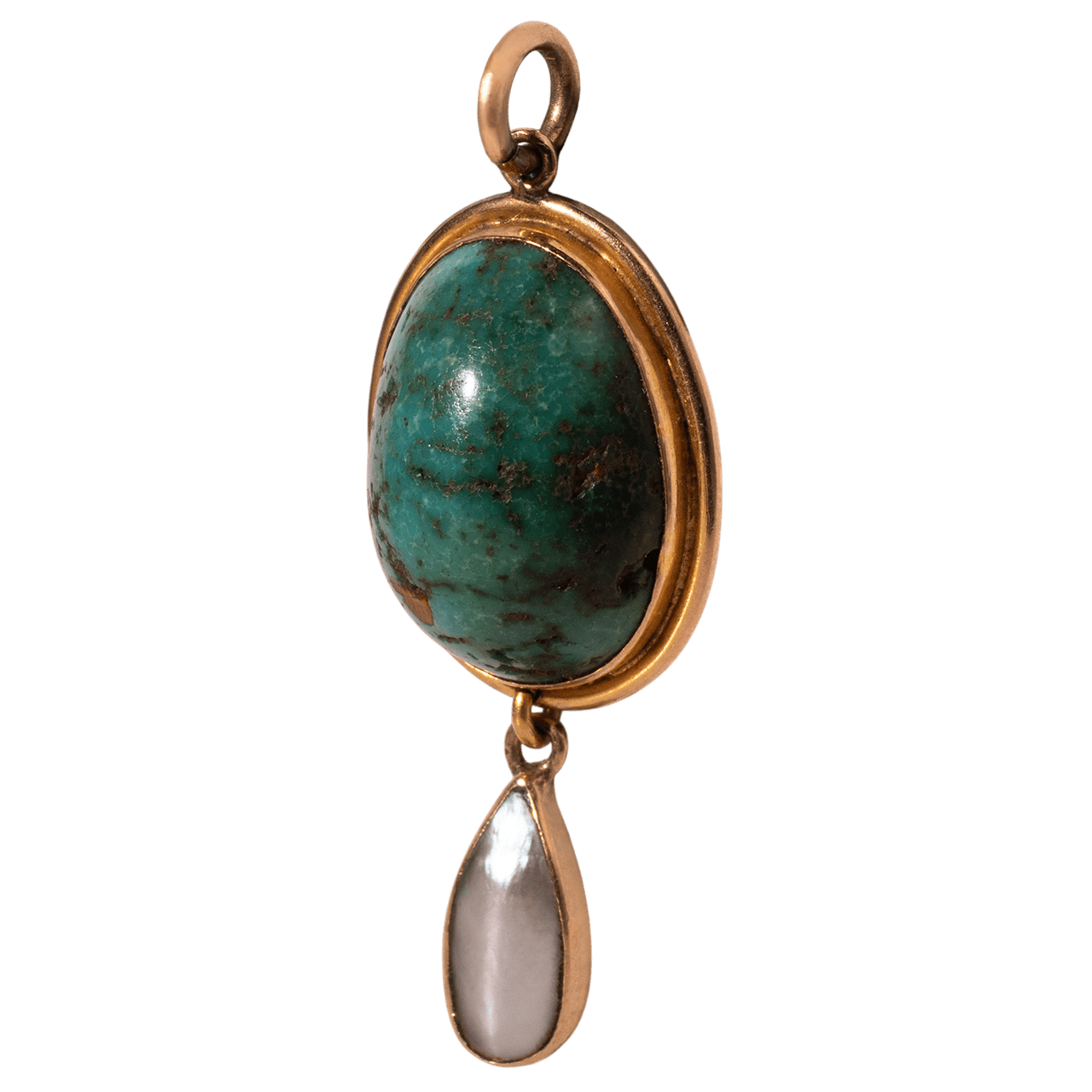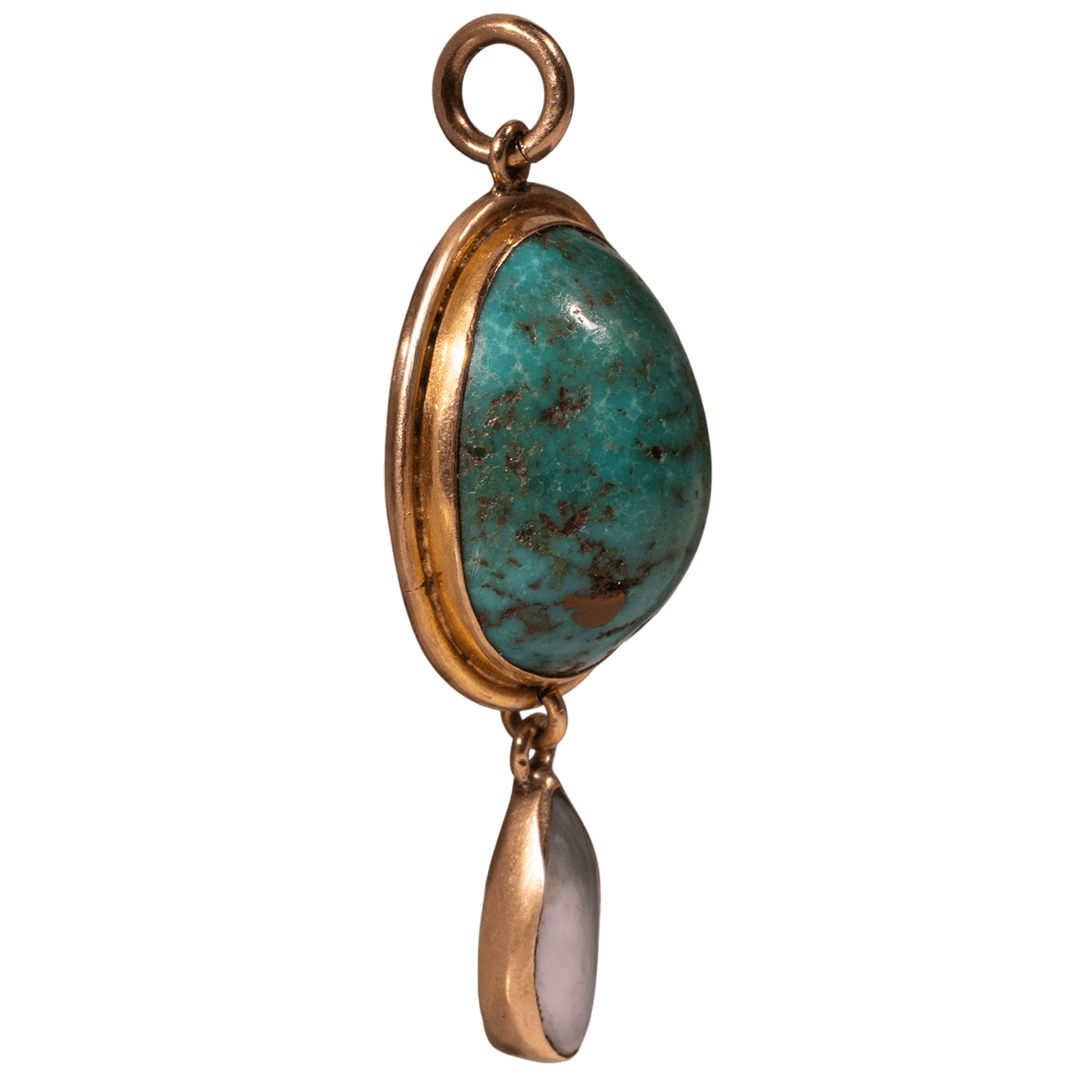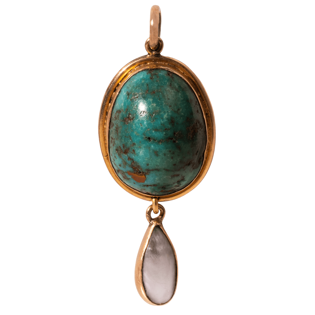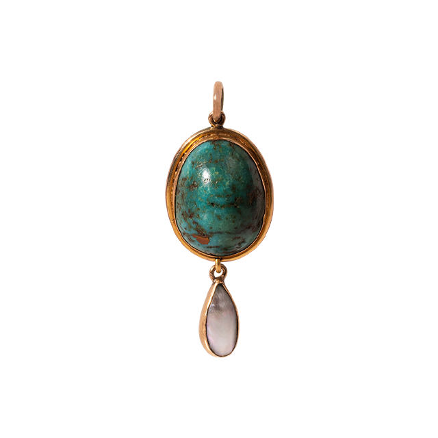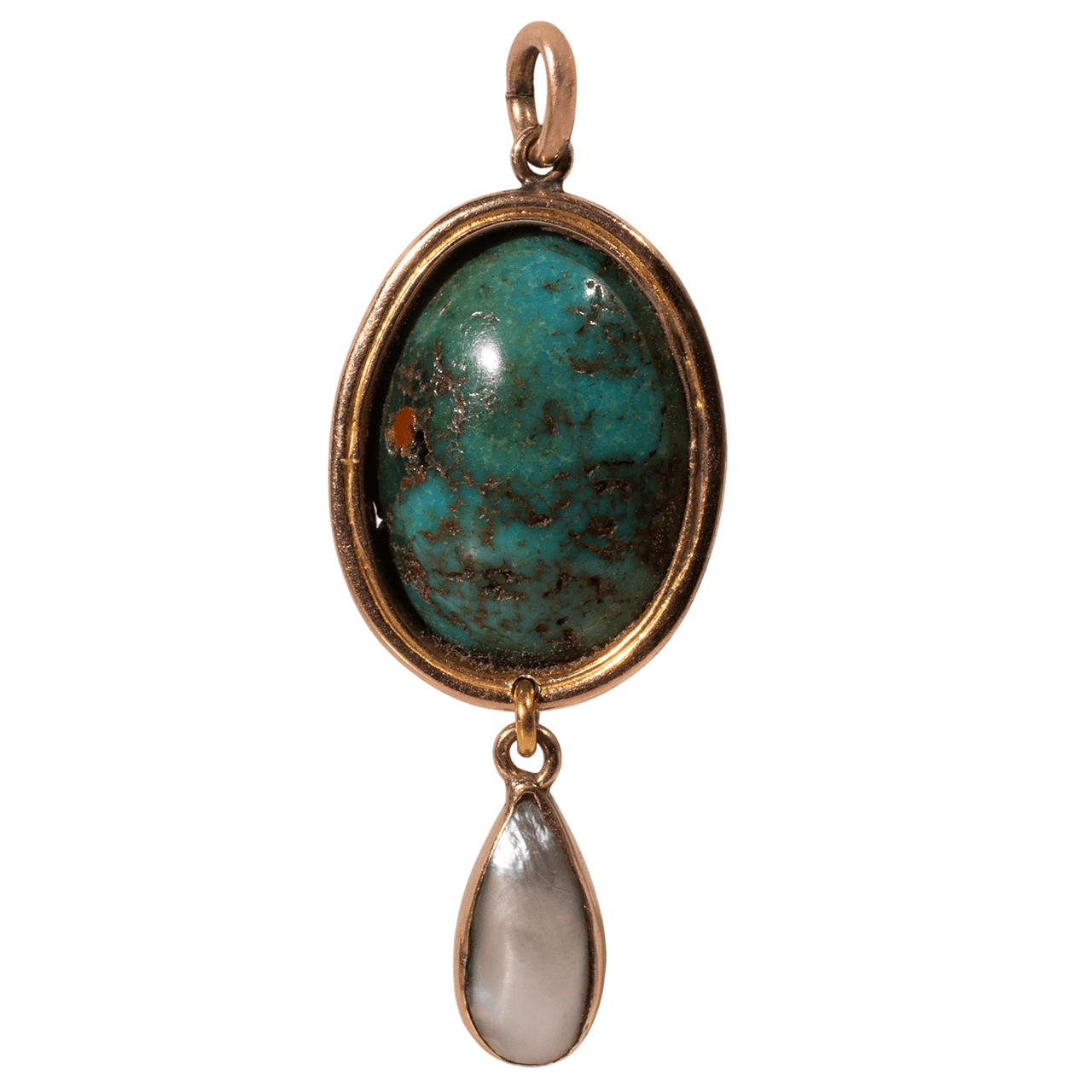 1900s 英國 美術工藝運動時期 綠松石與珠母貝吊墜