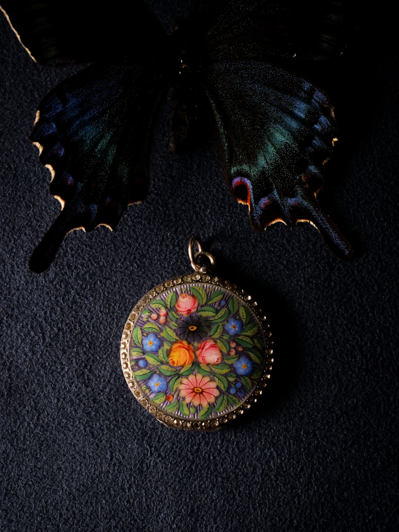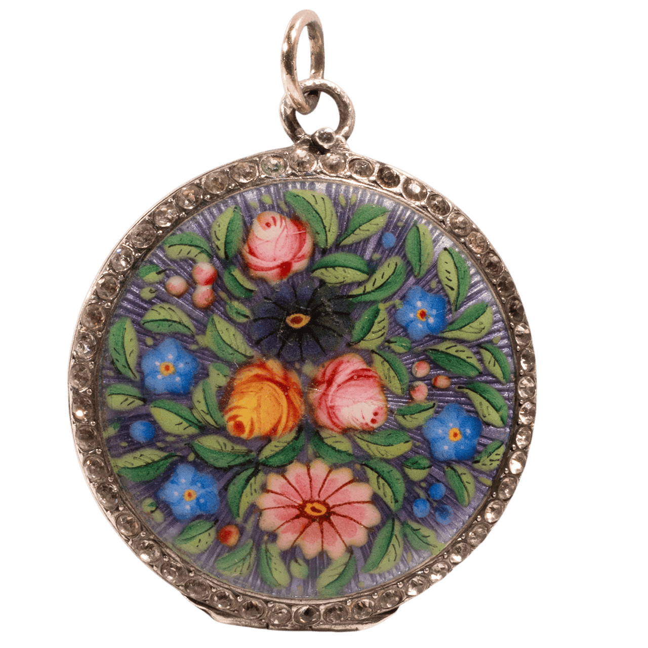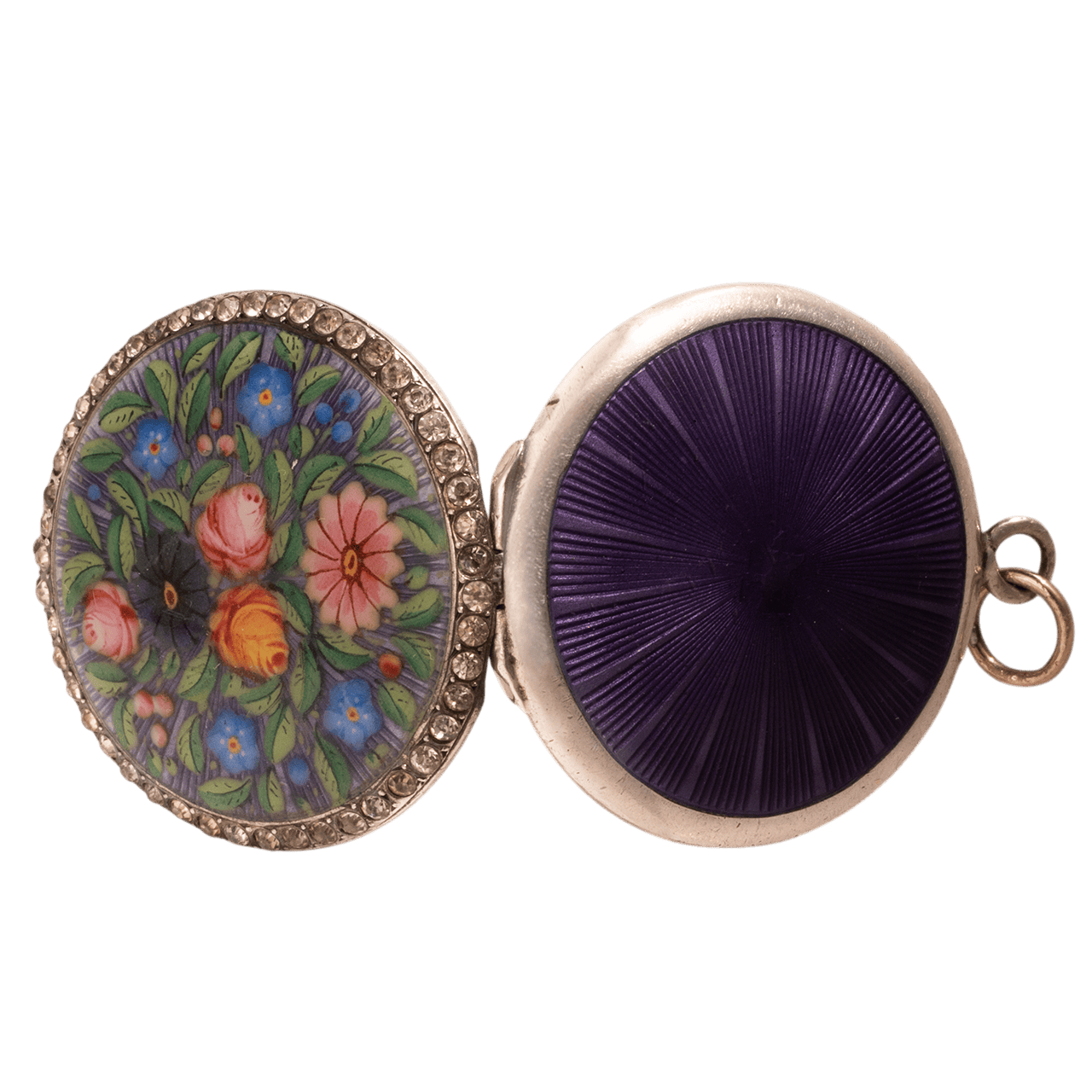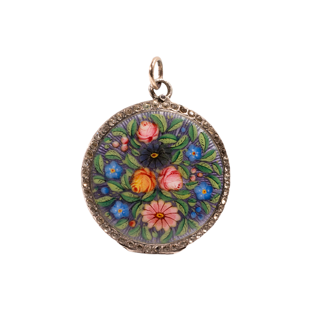 19世紀末期 英國 琺瑯花卉雙面相片墜