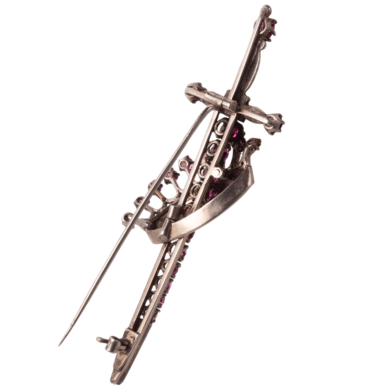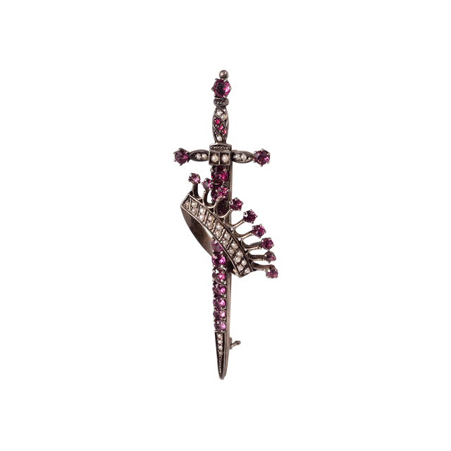 1890s 英國 維多利亞時代 寶劍與皇冠珍珠石榴石胸針
